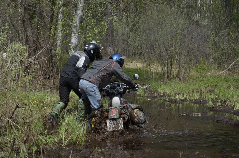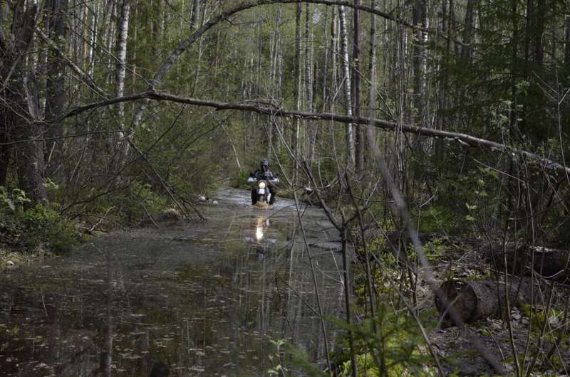 До Шестимирово не доехали.Вечерело, а так как ни кто не захотел ночевать в деревне,да и дома ждали. Решили повернуть назад. Нужно пораньше выезжать,да и форс мажор вмешался, джеб 250 решил искупаться в ручье. Обошлось без последствий,но время было потеряно. В следующий раз думаю все получиться.