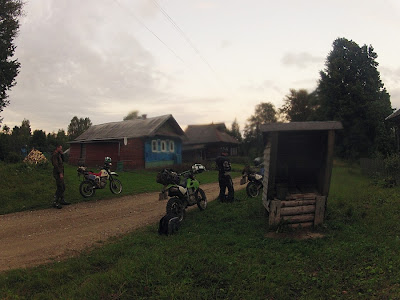 Пригласили меня, на этом форуме,))) покататься в выходные в районе реки Медведица, с учетом, что конкретное место дислокации выбираю я. Ну я и выбрал... Трехречье (там есть церковь в месте слияния трех рек, все мечтал побывать там летом) и Большие сетки, (там деревянная церковь в очень красивом месте на холме). Я планировал ехать с ночевкой, двое других моих спутников (с Твери и с Мск) - одним днём. У меня самого утра день не задался. Выехал как и планировал в 9 утра, не проехал и 10 км от города как проколол переднее колесо... пришлось возращаться. В городе быстренько метнулся на машине в магазин, купил новую камеру (ждать 3 часа когда засохнет клей на заплатке не было сил), перебортировал колесо и уже в 12 дня я был снова в пути... ![]() Ребята ждали меня у реки возле деревни БыкОво. В полном составе рванули в трехречье, дальше взяли в брод Городню и оказались на другом берегу Медведицы. Далее через лесок , поле, еще один брод и мы уже в Больших сетках.. ![]() ![]() ![]() Что то все получалось уж очень быстро легко и просто, вообщем без особого экстрима. Дальше решили ехать в д. Клюкино, через лес. Один навигатор показывал, что туда есть дорога, другой нави туда дороги не знал. Это означало, что мы выбрали правильный маршрут. Все таки дорога туда была, но пользовались ей последний раз лет 20-ть назад. Проще было ехать тупо через лес, по азимуту, по всем завалам , болотинам и кустам. Вот мы и ехали как могли... более 4-х часов. Последний километр леса моты через завалы упавших деревьев перетаскивали на себе по одному. ![]() ![]() ![]() Выехали в Клюкино, оказалось заброшенным. Ни колодца (на который я так расчитывал) ни какой нибудь дороги, полный облом. К этому времени на моте уже кончились все колодки и почти умерло сцепление, а у меня самого батарейка села на 90 %, т.е. я пару раз падал с просто стоящего мота... Доехали до ближайшей жилой деревни, в ней нашли таки колодец, но вода в нем оказалась тухлой. ![]() На сегодня хватит. Решили ехать в сторону асфальта. По полю, напрямик , было легче ехать чем через лес, но все же ехали очень медленно . На грунтовку выехали уже когда солнце ушло за горизонт, а на асфальт когда совсем стемнело. На развилке (Кашин налево, Горицы направо 40 км) у меня кончился основной бак. За 10 км до Гориц кончился и резерв. Встали на обочине, вылили мне запасную двухлитровую бутылку бензина , которая была у товарища и я опять проколол переднее колесо. Кое как дотянули до заправки, но что то мне стало так тоскливо... это уже не фига не экстрим, это больше похоже на полную жопу... Ночь, дождь, мы все мокрые, холод собачий, ветер на ходу продирает до костей, 80 км до Дубны мне показались вечностью. Не поверите, но я на пустом колесе ехал 70-80 км/ч и думал только об одном , лишь бы не разбортировалась покрышка на ходу... но поскольку было уже далеко за полночь и начался новый день, то все обошлось))) -------------------- все дороги ведут домой.