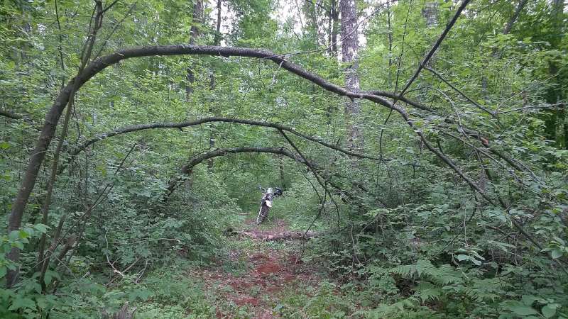 Покатушка удалась. Было всё. И песок,и грязь,грунтовки с твёрдым покрытием,и поросшие травой по пояс, где почти не видно где тропа проходит, и завалы.