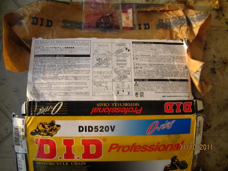 Не стал чикаться с покупкой цепи через инет, купил в Находке DID за 4800. Продавец сразу сказал, что это не то, что продают на базаре за 2600 (были такие предложения и в инете, на Фарпосте), а настоящий японцкий.Еще по его мнению( он сам эндурист, причем на соревнованиях по эндуро участвует, не просто покатушечник) ведущую звезду можно и нужно менять 2 раза за срок службы цепи, так она дольше проходит. Вот фото упаковки, в комплекте даже пакетик со смазкой с иероглифами.