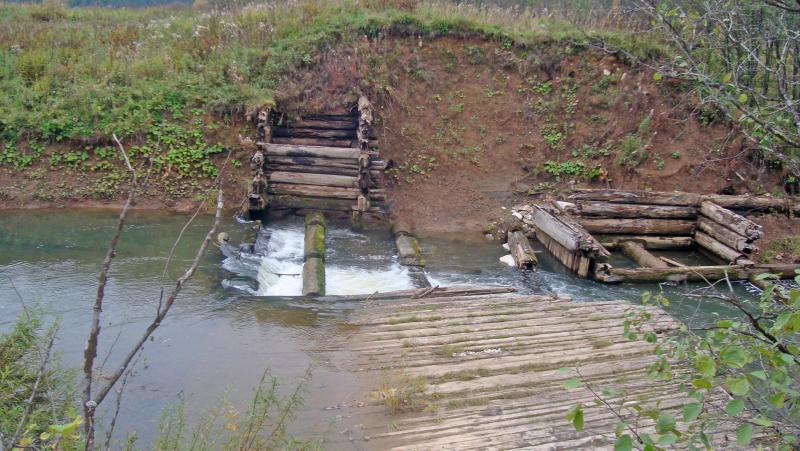 И вот третий, можно сказать - целый поход, с ночевкой. Очень приятно съездили: полноценно, по-боевому, по весьма забытым местам. Договорились, что Олег заезжает в 9-00 ко мне в гараж, откуда и стартуем. Созвонились утром, отложили на пол-часика, чтоб раздуло тучки. Я пошел пока подшипники в заду новые поставил, сальники, и втулки новомодные, блестящие, знамо кем точеные. Красиво: Олег приехал, я как раз уже мот выгнал из ворот. В общем в первом часу выехали ))) Асфальта и грунта километров сто, заправка в селе Илим, магазин, чай, дозакупка. Сабака за чебурек чуть руку не оттяпала )) К Чусовой снова подъехали в деревне Кашка, что стояла когда-то на устье реки Кашки, прямо напротив камня Дождевого. Самой деревни давно нет, остались памятники и остатки плотины. Здесь были пристани и плотбище, изготавливались и спускались на воду, грузились деревянные барки для сплава железа. Кроме того Кашкинцами внедрялась механизация по лесозаготовке, в Кашке гремели бои гражданской войны. Для меня интерес к этим местам был разогрет недавно прослушанной аудиокнигой "Золото Бунта" Алексея Иванова. Главный герой книги, сплавщик Осташка, был из Кашки. Остатки гидротехнических сооружений: Полетели дальше, несколько отдаляясь от Чусовой, в направлении села Серебрянка. Разные фотки на развалинах и полуразвалинах: Река Шурыш. Где-то здесь пропала во мгле горная стража, ведомая по снежной целине арестованным сплавщиком Осташкой на пути в тайный Скит. Мост через Серебряную построен в одну полосу, вторая полоса валяется в виде арматурных каркасов и опалубки фундаментов: На бывшей территории завода сейчас работает большая лесопилка. А развалины заводского корпуса уже на один этаж под землей: Ловят ельца и голавля: Странное здание, назначение выясняется Выехали из Серебрянки и взяли направление снова к Чусовой, к деревне Ослянка. Верхняя Ослянка была когда-то пристанью, куда сгоняли для загрузки железом посроенные выше по реке Барки. После прекращения караванных сплавов железа на Чусовой деревня утратила свое значение. Здесь мы съехали к реке и поехали по колее вдоль кромки воды. День закатывался, нужно было ночевать. Впереди виднелись крыши Нижней Ослянки (совсем маленькой, едва живой, деревушки). На самом закате нам достался красивый подарок в виде преодоления скального "прижима" по воде: Свернули на лесную дорогу, забрались повыше в гору, в лес, и уже в сумерках нашли уютную полянку. Ручей бежал в ущелье под нами, и Олег даже сползал за водой ) Героический поступок ) Я сидел и боялся один, слушая лай собак и голоса из деревни, пока он ползал ) Ужин в походе. Ну вы меня понимаете ))))))))) Главная фотка, в общем ) Утром покапал дождик, перестал, спали долго. Сразу, как поехали, зарубились в завалы. Хорошо, что вечером не стали туда соваться, а то была мысль ) Снова на просторе, снова на Чусовой: И вот наверное главная достопримечательность нашего похода. Недостроенный в первое десятилетие двадцатого века казенный завод и мост на устье реки Сылвица. Мост строился под узкоколейку, которая была отсыпана от Кушвы, а это несколько десятков километров высоченных насыпей среди гор и водоотводных сооружений из бетона и брусчатки. Все руками и лошадьми крестьян. Огромные, среди болота, до сих пор частично в аккуратной расшитой штукатурке, опоры моста, и фундаменты заводских сооружений. Это