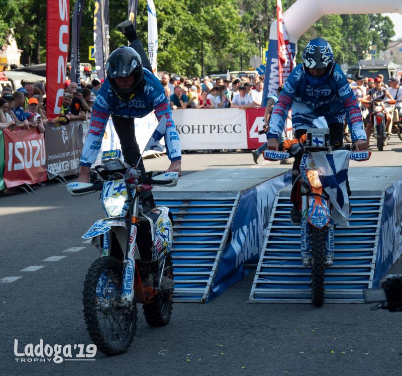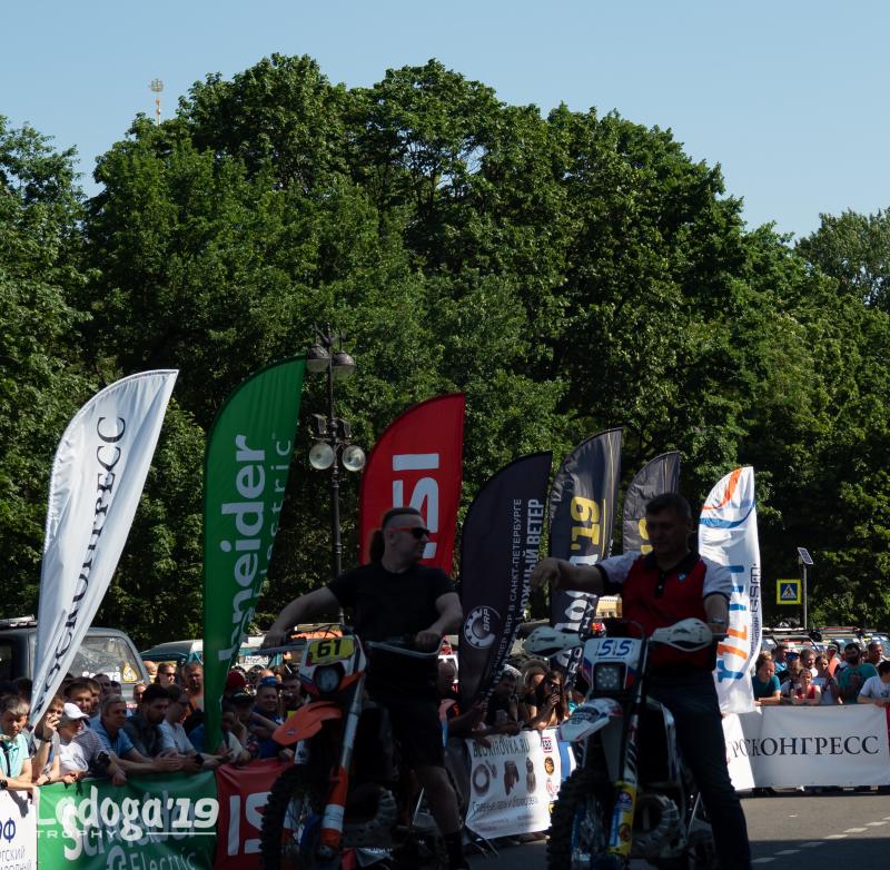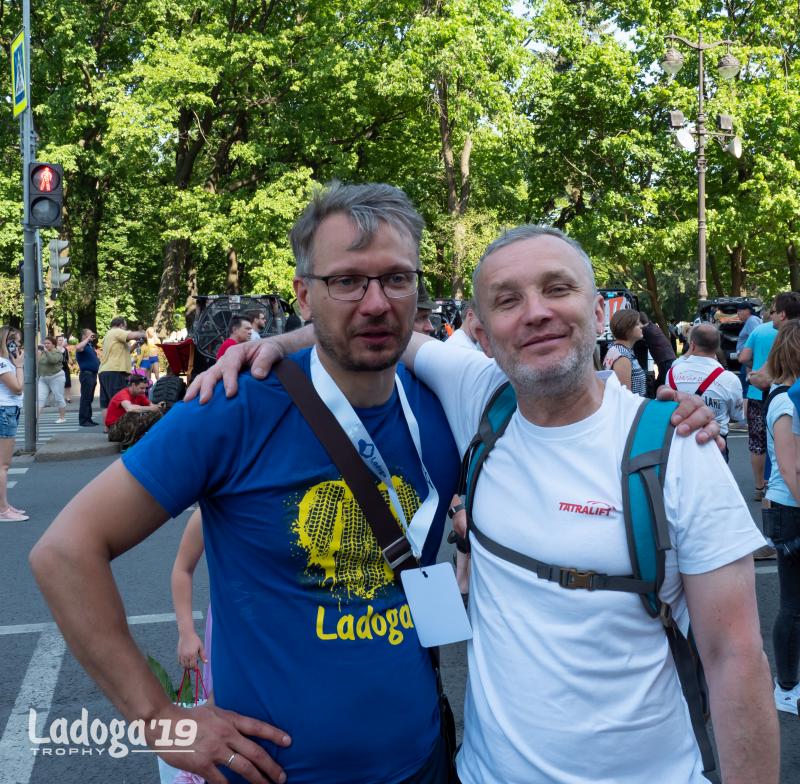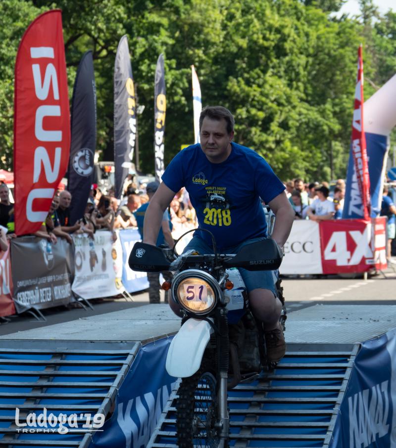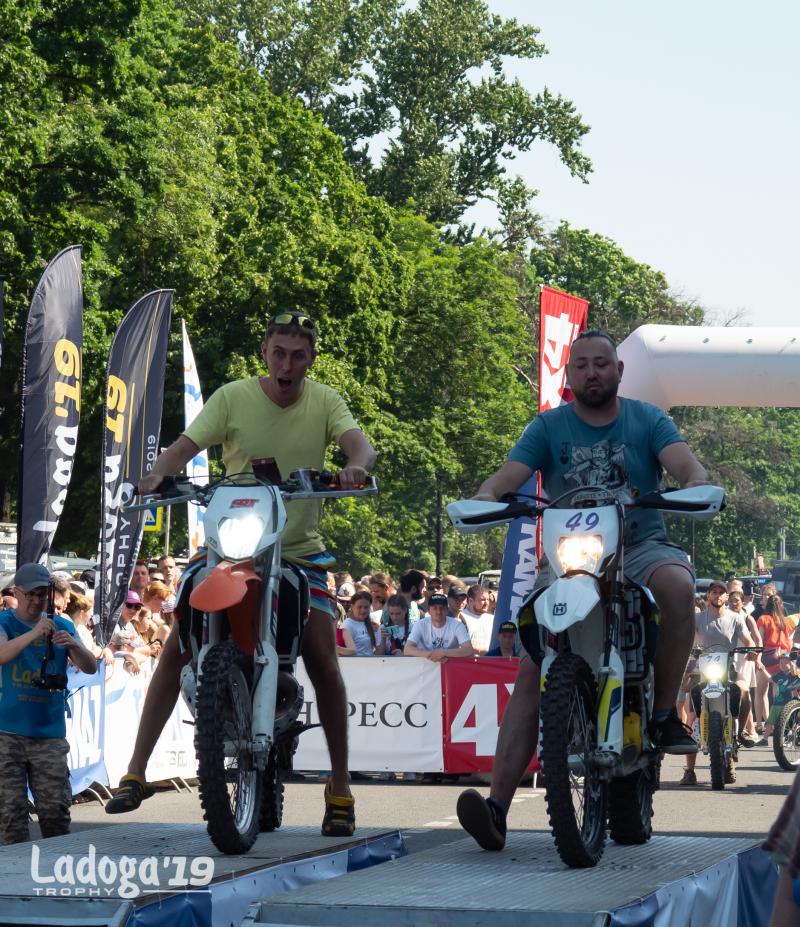 Будет много фото, если кого смущают логотипы, прошу понять и простить, это условие организаторов. Ранним утром повесил на мот две переметки, сумку с палаткой и канистрой и начал движение в сторону Казанского собора, где намечался торжественный старт гонки. Немного покрутился с поворотами, и в конце выехал прямо к автобусу "Пресс-службы", сразу же столкнулся нос к носу с одним из оргов гонки, Дмитрием и свои другом Сережей, который приехал проводить старт, никогда не пропускает, впрочем они все там почти родственники. Овчинников и Скобелев были пока в легком мандраже и сразу попали в прицел моей камеры. Грядка мотоциклов перед собором, снимаю ее, и ищу своих друзей, которых я видел в списке заявившихся на гонку! 1. 2. Евгения Тихомирова сложно не заметить в толпе, и он видит меня, улыбка в камеру. Вижу руководителя мото-зачета Сергея Киселева, в свое время мы как то даже общались про мотоциклы, это можно сказать его детище, в которое он вкладывает огромное количество времени и сил, и конечно прокладывает трассы и точки будущей гонки, адская работа если честно. Перемещаюсь в шумящей толпе, и замечаю, но , но, это как то я не ожидал, внезапно, Леву, и Алексея, вот это поворот событий, как говориться "слона" то и не заметил. Команду провожают в путь! "Собакин" смотрит на сточенное колесо моей "Собаки" Начинается торжественный старт, участники командой заезжают на стартовый подиум где объявляют их категорию, и стартовые номера, пафоса конечно через край, но выглядит красиво, что говорить. 1. Лев и Алексей, постоянно вижу парней в участниках "кантри-кросс" BRCup. 2. Следущие спортсмены в категории "Спорт", этих ребят не знаю. 3. Фины, очень позитивные, как я понял они не пропускают ни одной Ладоги. С подиума любят съезжать задрав ноги, Барышни непонятно с какими "Венками" Эстонцы, очень спокойные и расслабленные. Едут и о чем то трут между собой. На них Категория "Спорт" закончилась. Поехали "Адвенчеры" Карасев и Тихомиров, один "стантер", заднее колесо наше все, второй "эндуро", у Жени своя "Эндуро" школа, с прокатом, трассой, кстати очень позитивно, и добротно, у нас в лен-области, "Крутая-Гора", рекомендую к посещению. Сузуки "Джебель" !!!!!! Следующая команда, как я понимаю они второй раз. Еще одна команда. Последней шла команда в категории GT-moto Торжественная часть с мото завершилась, я договорился с парнями, сбросил в машину "шмурдяк", канистру с бензином, самое необходимое положил в переметки, мой путь лежал в Путилово, это по мурманской трассе, в тех местах есть старый карьер, где будет проходить этап категории "Спорт" на трассе проложенной Андреем Коробовым, в простонародье "Коробов-Штрассе". Двигаюсь по набережной в сторону мурманки, обгоняя судейские машины, погода великолепна, солнышко, мне кто то рекомендовал зонтик, если честно хочется снять куртку и ехать в футболке, реально жарко.) На мурманке ремонт дороги, но движение с утра достаточно свободное, в какой то момент догоняю целую веретеницу авто, скрывающуюся за горизонтом, иду по осевой, мне нужно прибыть на место, и отсечь точки съемки, медленно, все так медленно, не понимаю почему так медленно идет поток.... И в какой то момент, этот просто фантастика, обогнав несколько авто вижу перед собой колонну "байкеров" на "швабодках", "шпротах" и прочих "стидах" которые идут колонной заняв всю полосу, прямо как "тевтонский" клин