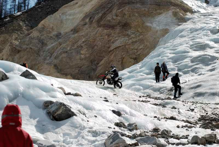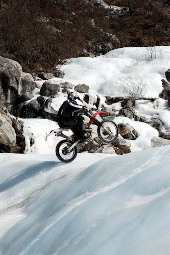 На льду на шипах очень красиво. Это XR400? А что за способ шиповки - на настоящие спидвейные похоже?