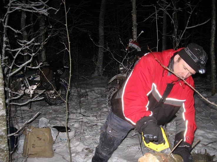 Цитата Серёга, это вы там со шмурдяком, типа в палатках ночевали да, эту тему давно вынашивали. заночевать в лесу со всеми прибамбасами. Все получилось можно сказать, по задуманному. Ехали в равных условиях на нешипованном трекмастере. температура минус 10. До места по темноте приехали мокрые от пота. Красотищща! С костром долго провозились. Дрова сырые были, но потом все пошло пучком. Спали в палатке в одежде и обычных спальниках. В принципе вполне комфортно. Извиняемся, что не пригласили никого из ближайшего окружения, т.к. решение поехать приняли в крайний момент и собирались в аварийном режиме. Пишу с Колиного компа. serg696 Цитата , вы что, на лыжников охотиться ходили Ха ха! кстати, лыжники на редкость смирные оказались, ни один не оказал сопротивление, типа палку в колесо сунуть. Лыжню братьям нашим меньшим старались не ломать, кое где этого оказалось не избежать, но надеюсь нас простят.. Не, они искали приключений на ж и нашли Эндуристы приключения не ищут. приключения сами их находят. СтОит только выехать на джебеле из гаража дальше одного км. -------------------- Извини браток,но ето не Харлей , а Урал.. вконтактеhttp://vkontakte.ru/id6569732