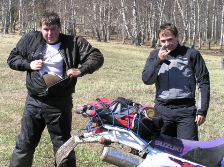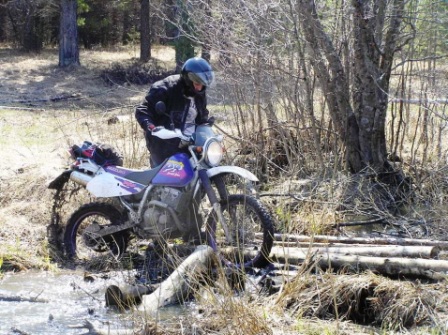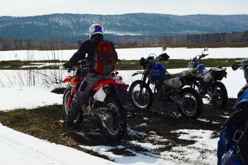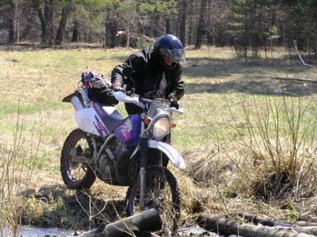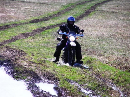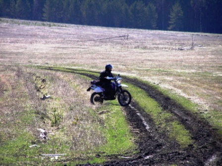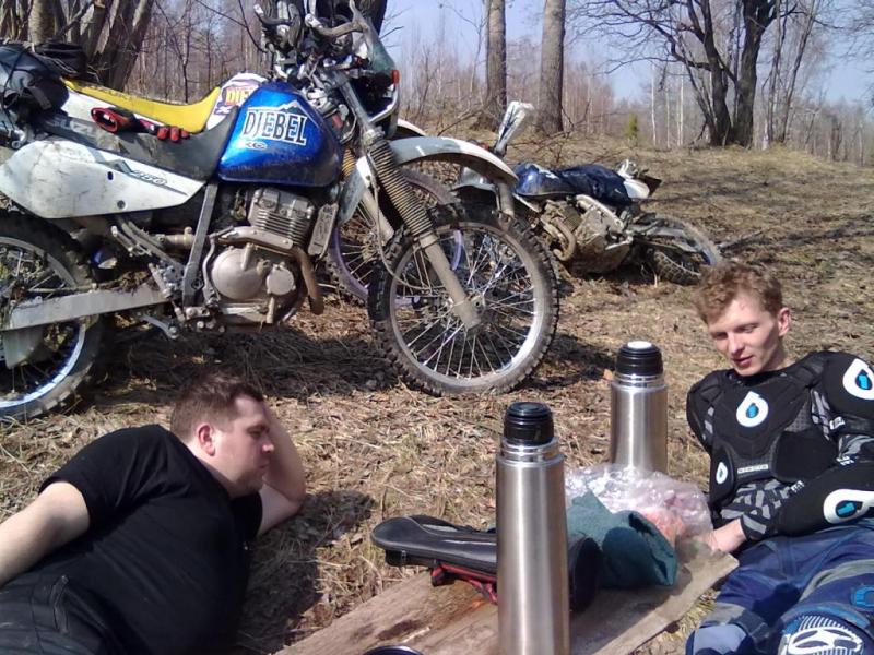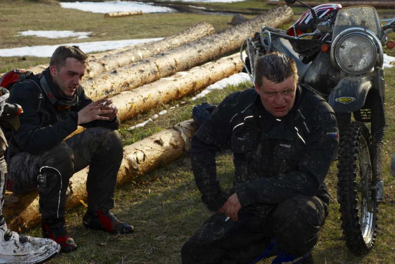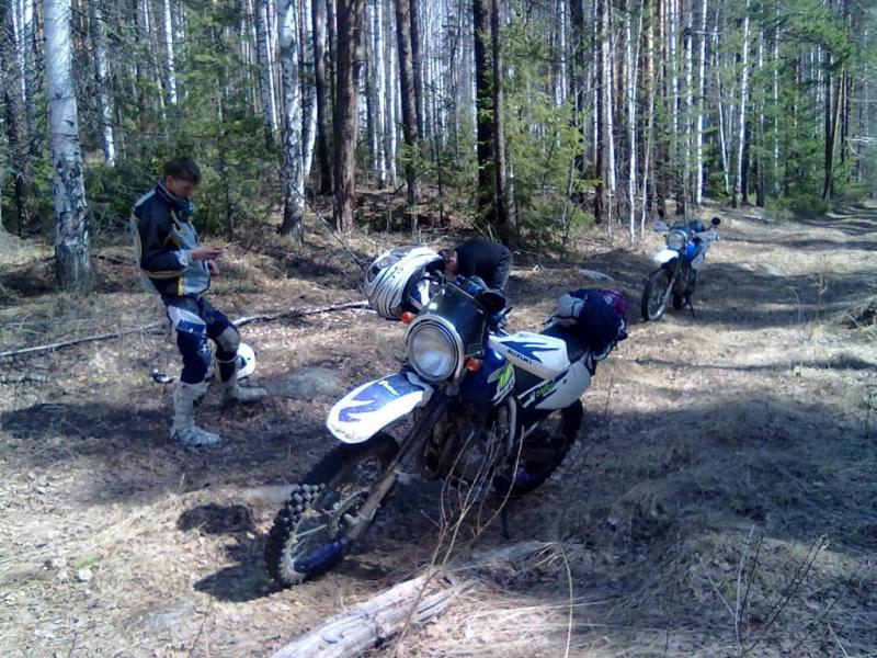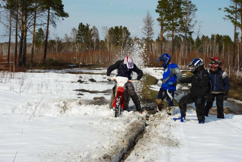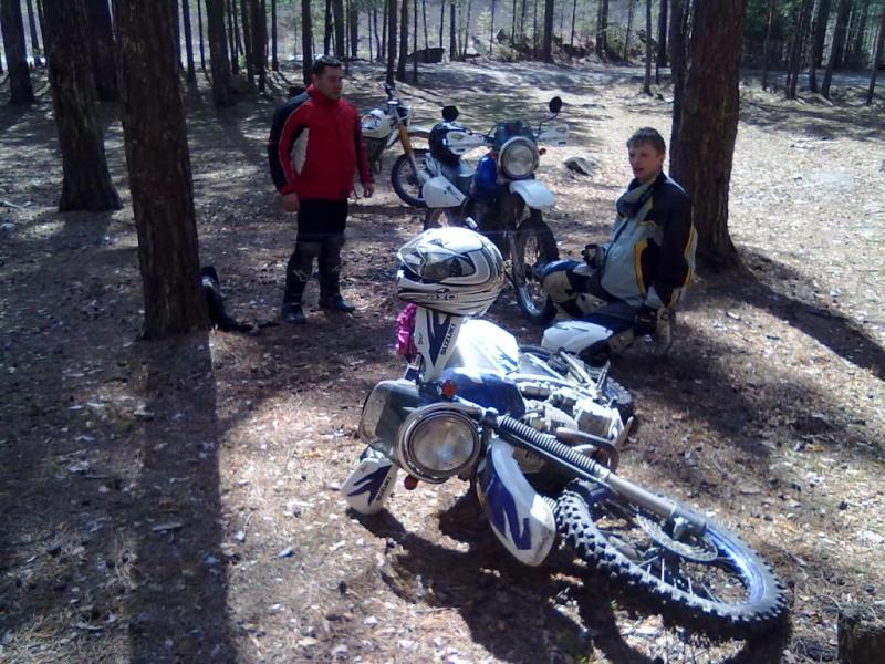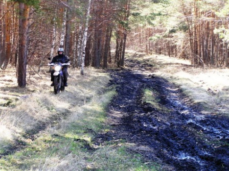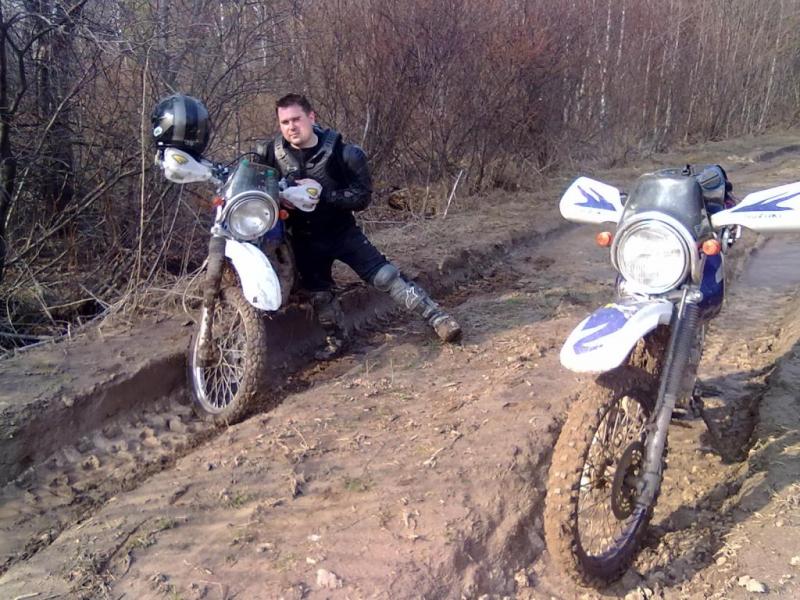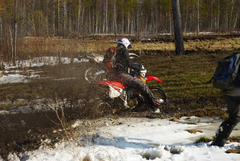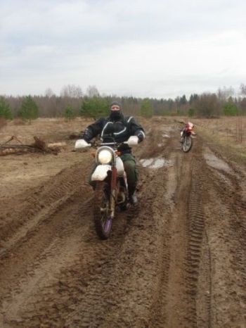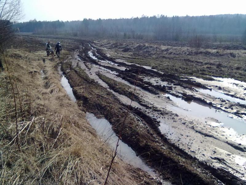Я на козлике. Друзья на квадре. Пройдено 65 км бездорожья разбитого лесовозами и весной. Из них 12 км пройдено за 5 часов. Искупался в луже притом с ног до головы. Огромное количество бродов, один переходил пешком перекатывая мот рядом, набрал полные бахилы ОЗК воды. Третий день спина отваливаеться от вытягиваний мотоцыкла из грязей и топей. Кисти рук от руля еле отодрал, до сих пор красные от напряга. 2 раза пользовались лебедкой один раз меня тянули один квадр. По спидометру пройдя 80 км сжег 5.5 л бензина.