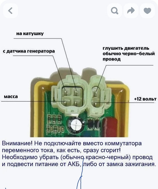 Подключил для проверки китайский ЭБУ мотоцикл завелся, работает хорошо. А что за модель коммутатора? (ссылка/артикул?) Неплохо бы иметь про запас за скромные деньги. Себе купил недавно на озоне китайский Модуль CDI для Suzuki 32900-19B50 Блок CDI Для QuadRunner LT-4WD LT-F250 за .. 175 рублей. С чертовски похожим разъёмом, от сузучьего же мотора близкой кубатуры. Все никак руки не доходят накопать распиновку и попробовать на мотоцикле, в надежде "а вдруг подойдет"... "оригинальный коммутатор" ... "за вменяемые деньги" - тут что-то одно лишнее) Полезно: 0