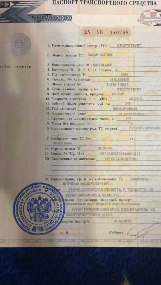 Документы в порядке. год выпуска стоит 2002 ГОд выпуска в ПТС мотоцикла обычно показывает день рождения бабушки по галактическому календарю. в интернете я не смог найти что это за модификация такая. ДР-250S. c Джебелем-250 мало общего. Выпускался вроде до 96 г, мотор двухклапанный, 5 передач.