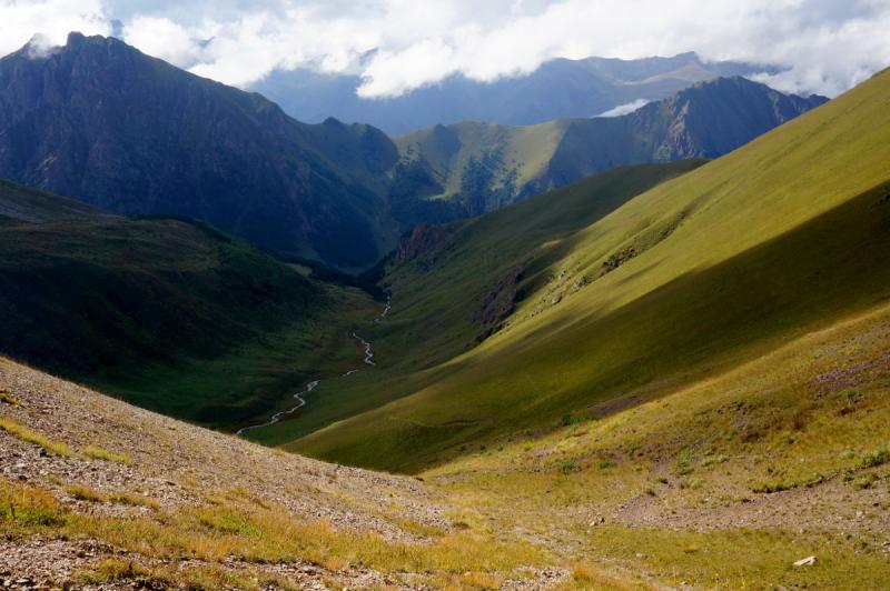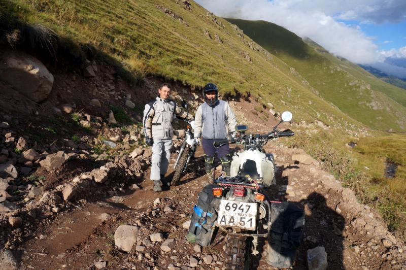 Сегодня покатал на перевал со стороны Теберды, обычная плохая грунтовка, наверху пара новых дорог, к озёрам и на перевал, старая размыта. Местность довольно унылая; хорошо осмотрел тропу с перевала к Красному Карачаю, встретил местных на Шерпах (приглашали решать проблемы с маслом или ремонтом к ним на базу Рыбацкий рай в Теберде), общее мнение - тропа пешая, на моте никогда не проходилась.