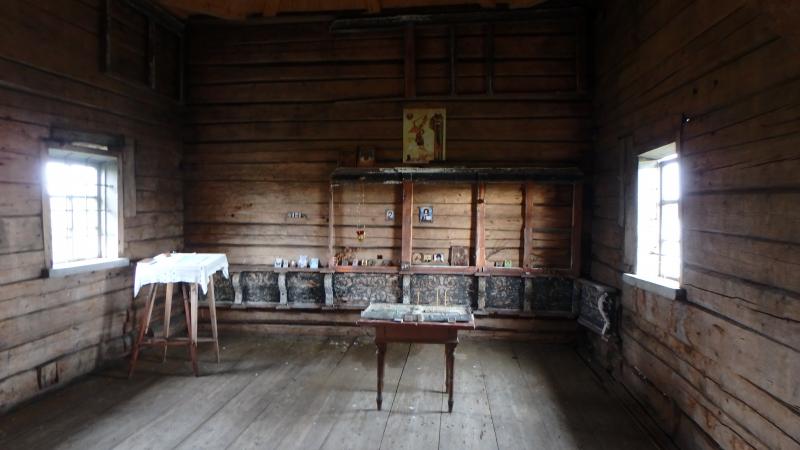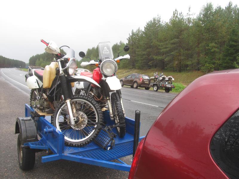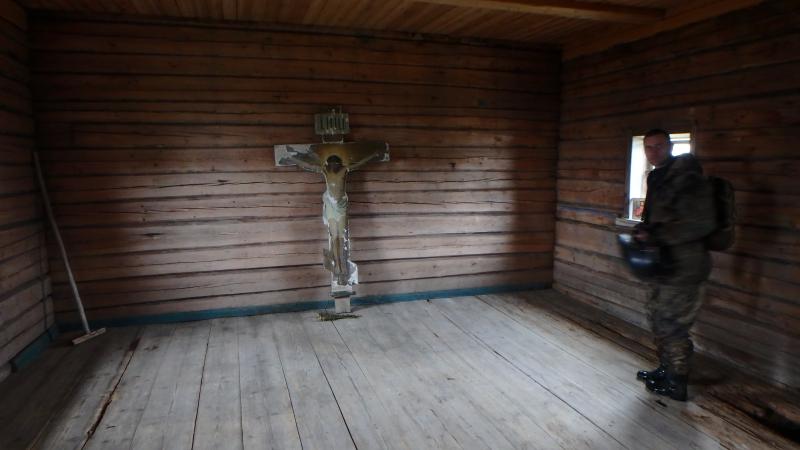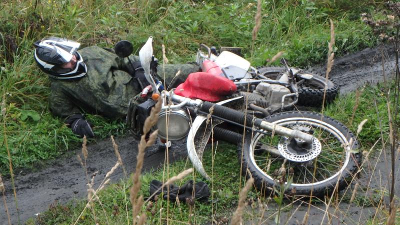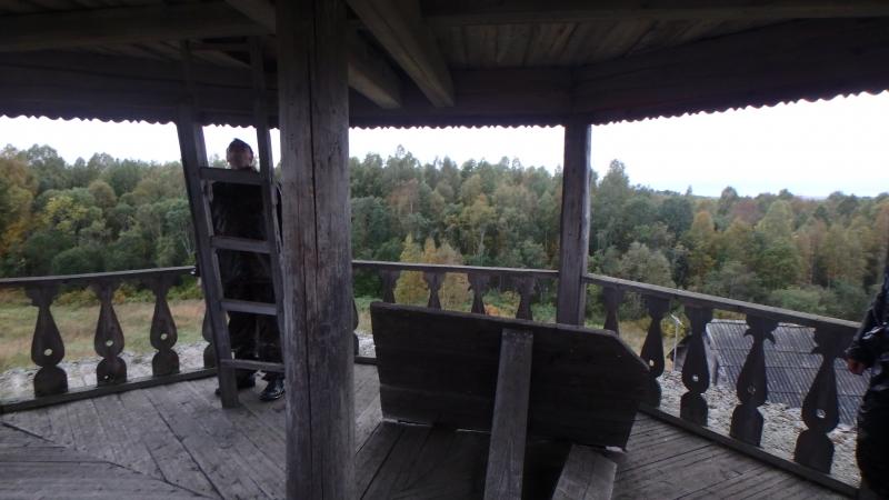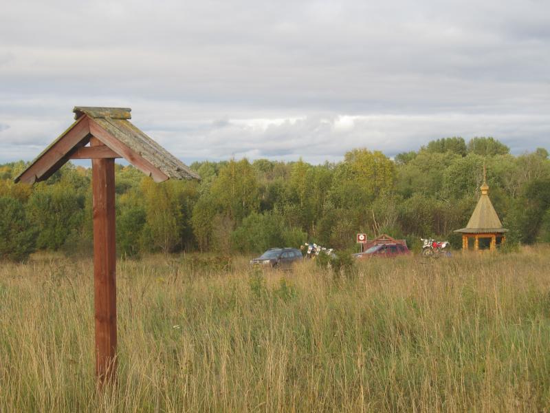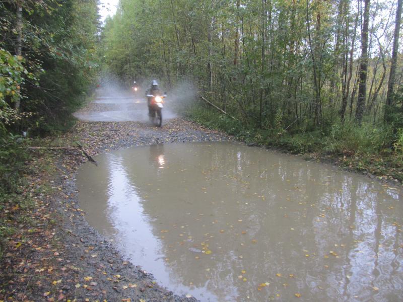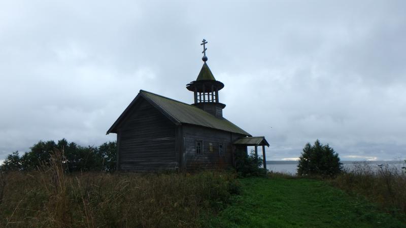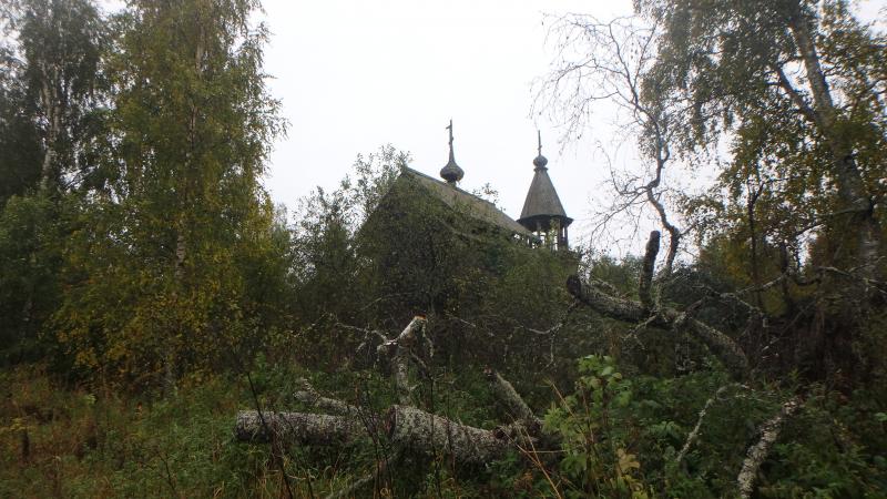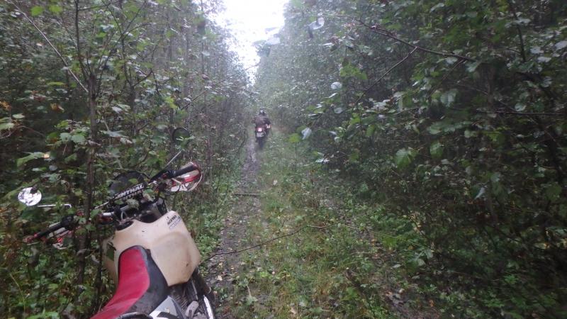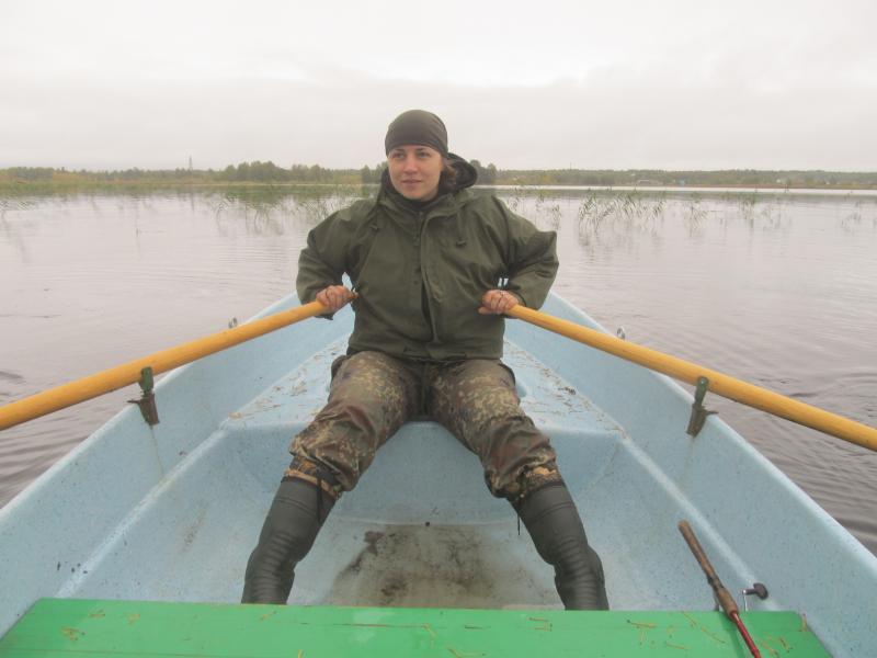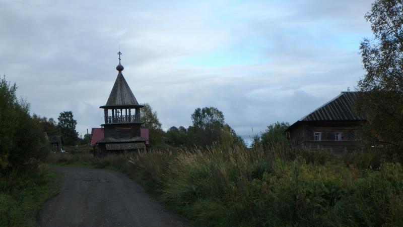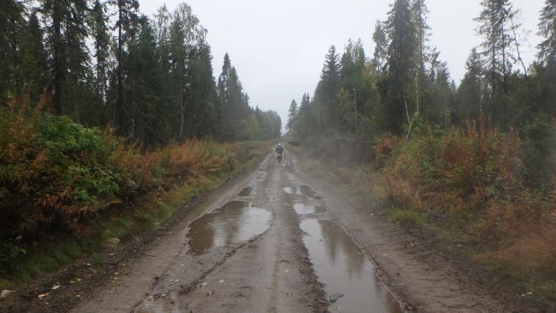 Встала рано, в шесть с небольшим. Дождь до сих пор идёт. Только из полноценного сильного ливня перешёл в уверенную крупную морось. Прохладно, но видимо я действительно стала привыкать к холоду, и температура ощущалась теплее, чем вчера. Хотя, возможно немного потеплело. Саня дрыхнет. Ромка объявил бойкот, отказавшись в дождь и рыбачить, и вообще вылезать из палатки. И только Женя на мой зов вышел из палатки и составил мне утреннюю компанию, да и то ближе к девяти. Как только мы перетащили полевую кухню в сторону, под тент, дождь усилился. В палатке остался только Саня. Ромка всё же вылез. Прогноз погоды обещает дождь на всю неделю, но мы не падаем духом и настроением: дождь, так дождь Саня присоединился к нам выспавшийся и довольный, и ни дождь, ни ветер ему не мешали довольно улыбаться. К 11:30 вода падающая с неба всё же утихла, но сильный пронизывающий ветер продувал насквозь. Очень холодно. Я развлекаюсь тем, что троллю форум, в красках рассказывая, что у нас жара, и что на Онегу нужно обязательно брать купальники. Ребята помогают. Весело. На душе становится теплее Нашествие лягушек с дождём только увеличилось. А вчера ещё и мышка к нам прибегала. Хотя кроме меня её снова никто не видел Место, где мы стоим лагерем очень живое: птицы, мыши, лягушки, белки, утки, рыбы, светлячки. Ещё и собаки с котом заходили Все уже с самого утра были настолько замёрзшие, что проскочила странная мысль сделать день перерыва и остаться в лагере. Но естественно никто в эту безумную мысль не поверил и не принял её в серьёз. К моменту окончания нашего завтрака, дождик прекратился, мы утеплились и выдвинулись к точкам, которые не успели посетить вчера. Перед стартом Саня и Женя на всякий случай доливают себе бензин. Так же на смазке цепей не забывают поиздеваться над Хондой, на этот раз из-за того, что она отказывается самостоятельно крутить колесо стоя на подножке и облегчить тем самым смазку цепи суровым эндуристам 12:30 – выезд. Первое, что делаем, едем искать срезку на выезд из посёлка, чтобы снова не ехать по асфальту. Грейдер оказался очень приятным, а дорожка красивой. Еду сразу в очках. Всё видно чётко Сегодня было особенно заметно, что в этих местах много рябины. Она своими красными гроздьями создаёт яркий акцент среди зелёной и жёлтой листвы. А прошедший дождь придал тихому лесу удивительную свежесть. По дороге подъехали посмотреть озеро Большое Леликовское. Вода чистая, прозрачная. Остаёмся здесь на какое-то время и просто смотрим на озеро. Почему-то все залипли. Видимо магия места Едем дальше. Лес меняется, от полностью хвойного, до смешенного и лиственного. Офигенный грейдер с большими, но не глубокими лужами. И настолько он был хорош, что это превысило моё желание не промокнуть, и просто спровоцировало меня ради удовольствия и красивого фото полетать по лужам на скорости, как я люблю, но уже делаю не так часто, как хотелось бы. Видимо Да и надеялась полностью просушиться после веселья на ходу. Фото, как всегда не получилось При езде от мороси на очках появляются капли и я всё же снимаю очки: видеть дорогу сейчас гораздо важнее, чем рассматривать очертания травинок и листочков Едем смотреть церковь. Широкий грейдер постепенно начинает сужаться и превращается в небольшую дорожку с колеями, но вполне укатанную. Часовню замечаем не сразу. Саня пролетает хорошо впер