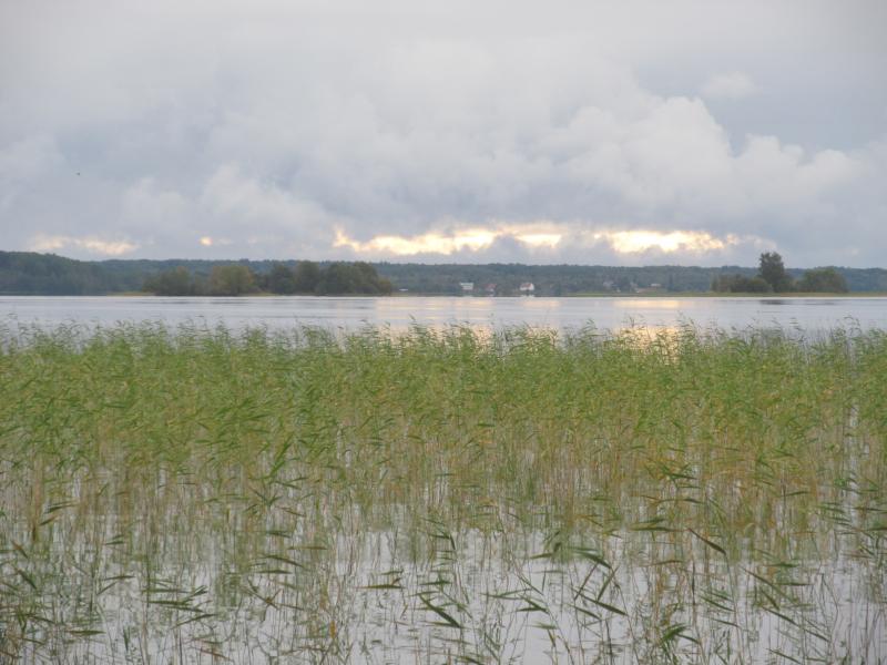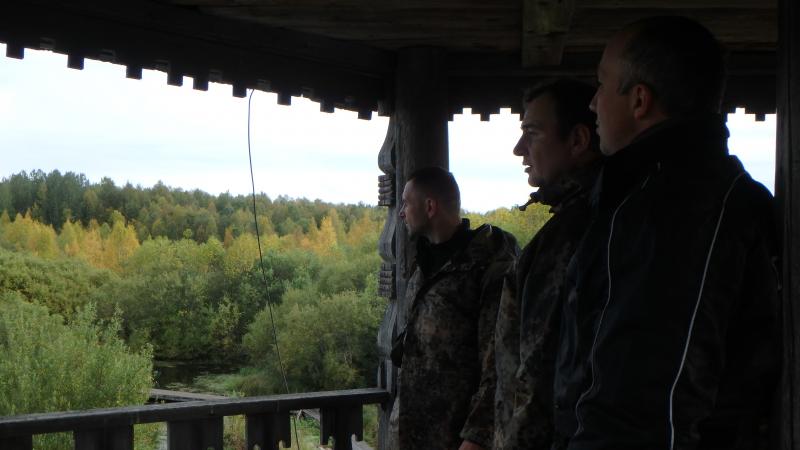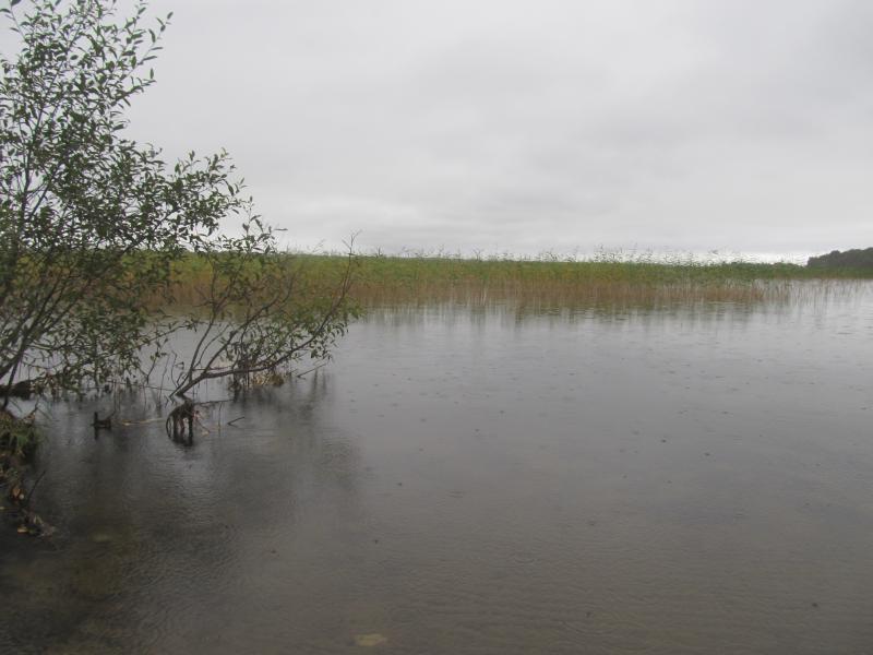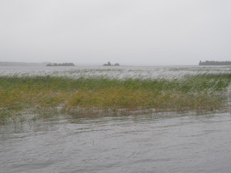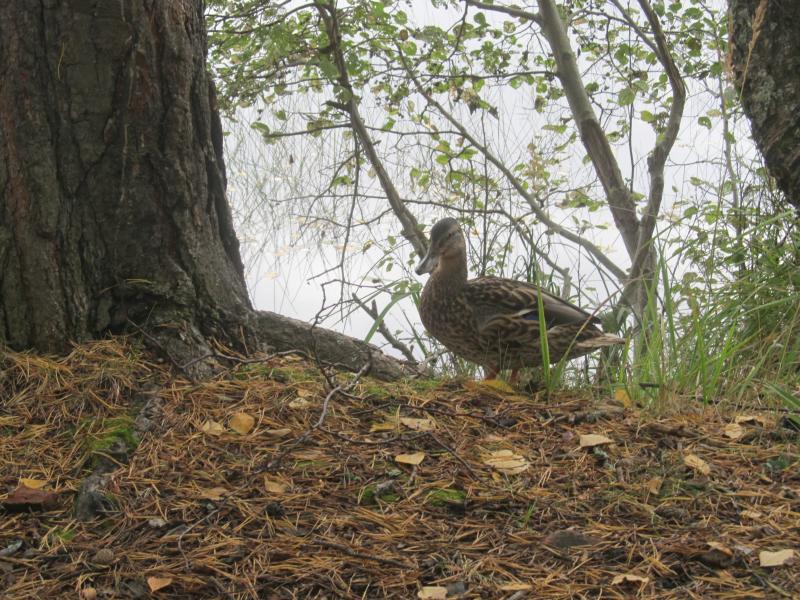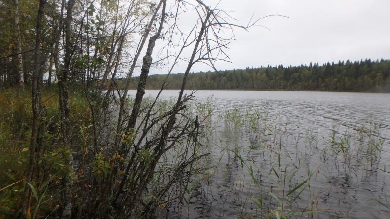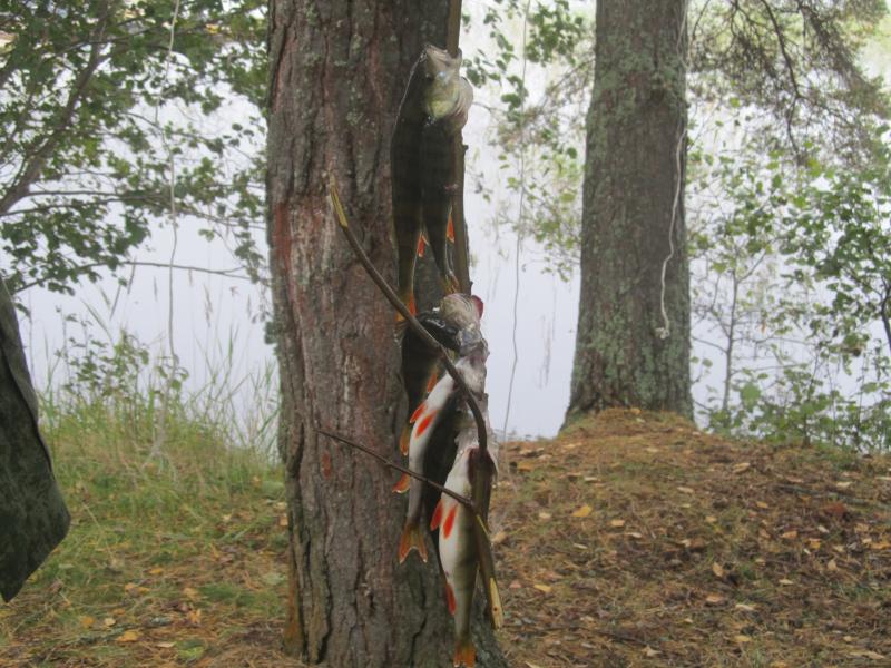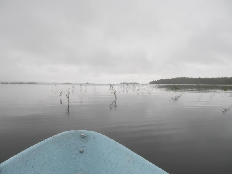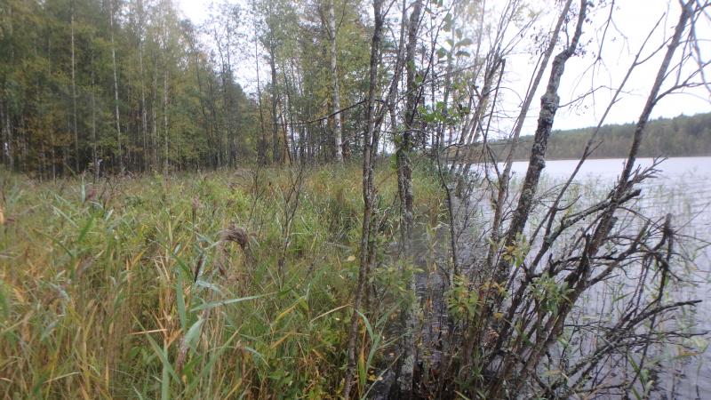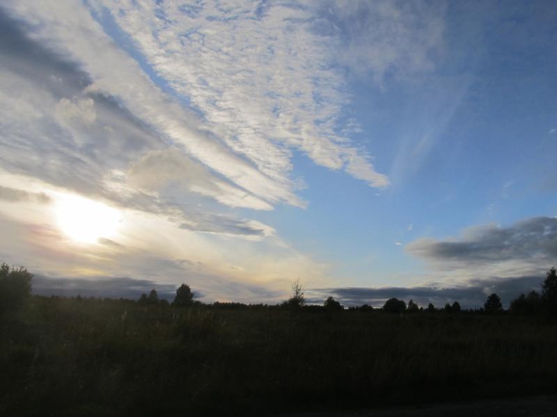 Подъём в 5:50. Наши ребята должны были в 6 уже быть в гараже, чтобы собраться. То, что мы упаковались с вечера, позволило нам поспать на час подольше. 7:35 – выезд из гаража. Женя и Саня всё же стартанули чуть раньше и нам предстояло их догнать. В 10:00 не доезжая до Лодейного поля, где у нас планировался совместный завтрак, влупил сильный ливень. Но ребята нашли место – придорожная беседка на обочине от дороги. Радостная встреча, шикарный завтрак от ребят. Обсуждение ближайших планов. И в путь! Уже по традиции Женя за несколько месяцев до похода штудировал различные отчёты, статьи и собирал информацию о местах и направлениях, составляя максимально продуктивный и интересный маршрут на весь поход. Было не мало версий похода, но в итоге всё получится так, как изначально никто не планировал Перед въездом в Карелию дождь прекратился, на горизонте виднеется небольшой просвет, а облака над нами уже не тёмные, а светло-серые, можно сказать дымчатые. Муромка петляла между осенними пейзажами, оказываясь то безлюдной, то откуда-то появлялось скопление машин и так же внезапно рассеивалось. По обочинам много грибников: там и тут оставлены машины. Прохладно. Мне в машине снова не весело – жутко болит голова. В очередной раз пытаюсь понять почему на меня так действует эта машина, но оставляю эти попытки и стараюсь сосредоточиться на процессе езды и на видах за окном. Ребята захватили с собой игрушки, так что нам с Женей было чем развлечься: Ромка и Саня матерились на окружающие машины, которые «не едут», а мы с Женей по рации делились впечатлениями от услышанного 15:03 – сворачиваем к Медвежьегорску. 16:00 – слева открывается вид на озеро Онега. Проезжаем мимо шунгитового рудника, решая заехать на него на обратном пути. И первая остановка – Царицын Ключ. Просторы вокруг радуют, дышится полной грудью. Идём к источнику. Набираем с собой воды, ледяной и очень вкусной. Ребята болтают, а мне захотелось немного пройтись. Топаю по направлению к дороге и всё внутри меня радуется тому, что мы наконец-таки выбрались, поход начался. Пока мы были здесь, выглянуло солнышко, казалось, что пасмурное небо улыбается Едем дальше. Вдали видим Яндомозеро, на котором мыс делит озеро практически пополам. Сразу хочется предупредить и извиниться за качество фотографий: учитывая погодные условия нашего похода и непрофессиональные аппараты, далеко не все фотографии получились яркими и чёткими. Но что есть, то есть. Едем дальше. Красивый вид с небольшого мостика уже на подъезде к конечной на сегодня точке: 18:10 – прибыли в небольшой посёлок Больничный. Мы на месте. Договорились о стоянке с владельцем базы отдыха. Хозяин Александр, очень хороший и отзывчивый человек. Машины мы оставили перед домом, а сами отметили приезд и перетащили нужные вещи на место будущего лагеря – на берег озера, в сосновый бор, располагающийся за домиками. Вокруг не слишком обширная территория огромных сосен, на берегу озера, вдали от дорог. За соснами начинаются лиственные деревья и кусты. На озере, недалеко от лагеря, причал. Вокруг тишина, разбавляемая лишь голосами птиц и шутками ребят. Запах хвои, травы, свежести от прошедшего ранее дождя, а так же едва уловимый аромат грибов и земли. На самой территории гостевого дома (мы стояли в стороне) тихо и безлюдно. Постояльцев здесь не много, и все они приезжают сюда за ти