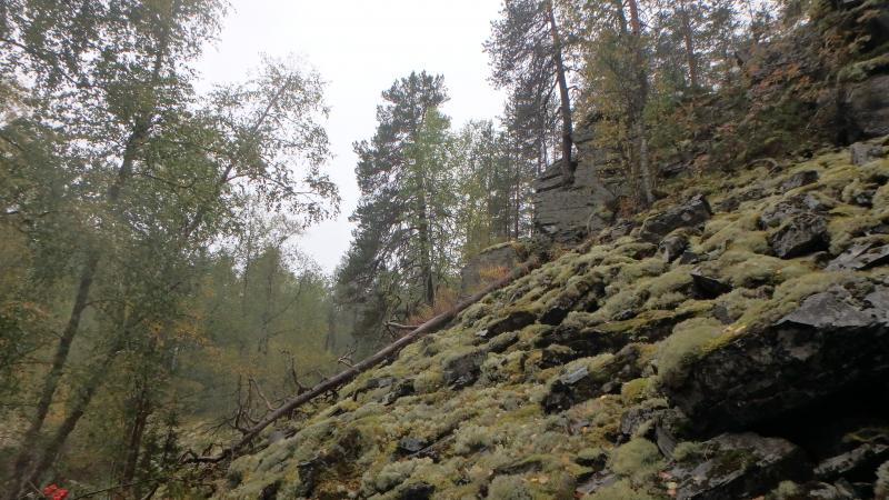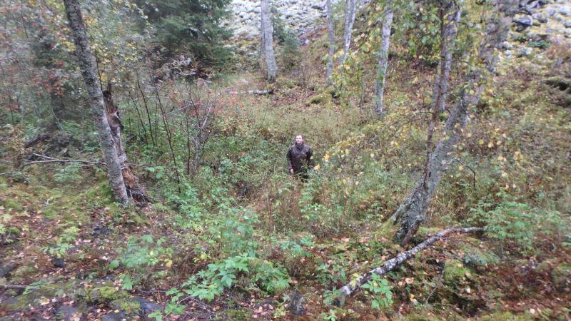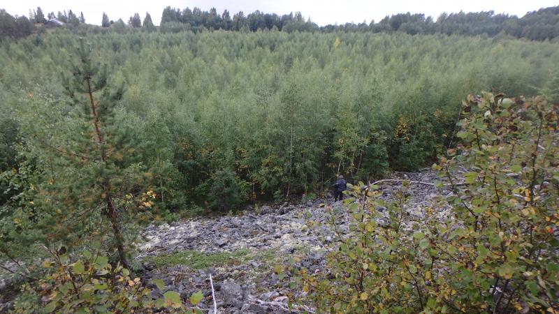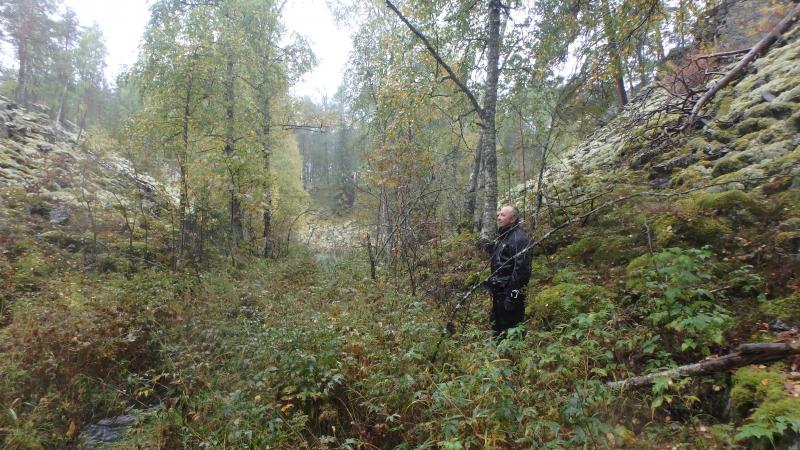 Разделяемся. Женя уходит низом в неизвестном направлении обследования. Саня лезет на одну гору, и практически сразу исчезает из нашего поля зрения, так же как и Женя.