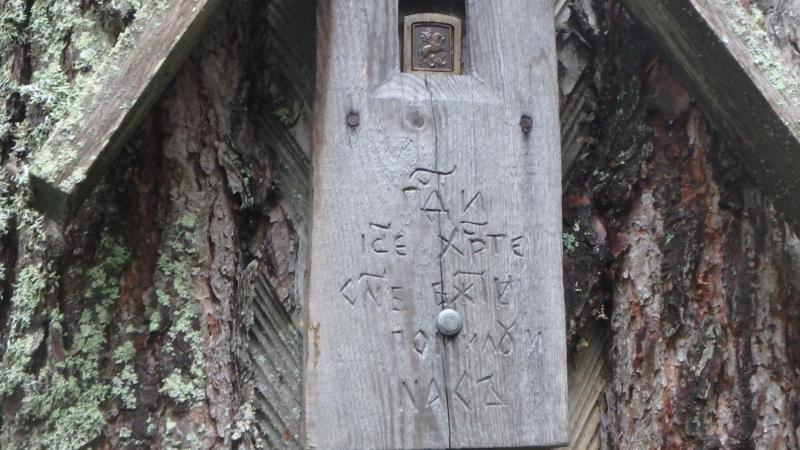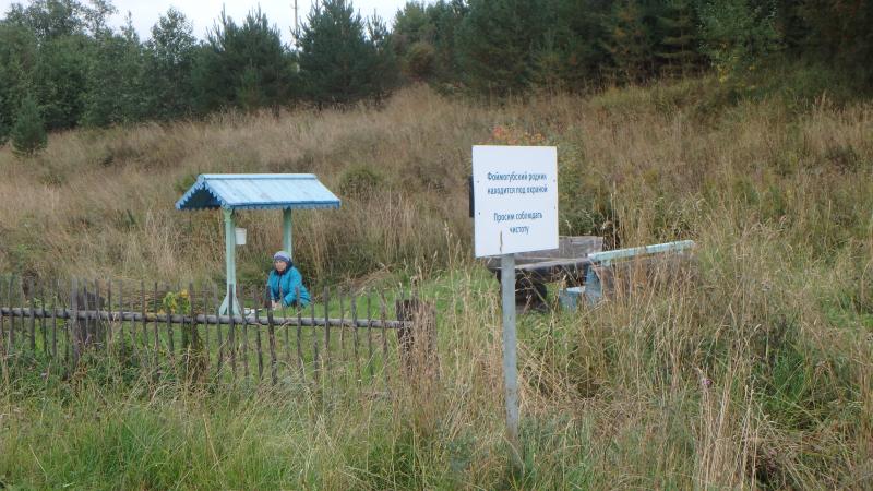 Накрапывает уверенная морось. Мы с Ромкой уходим к другой каменной горе. Осматриваем её, залезая по очереди. Подъём и спуск по камням не простой, камни мокрые и большей частью подвижные. Нужно было быть осторожными и выбирать на какие можно опираться, а на какие нет, и учитывать, что в резиновых сапогах всё становилось ещё более скользким. Виды и атмосфера этого мета очень своеобразные, вокруг нестандартная, но бесспорная красота. Небольшое сумбурное видео Потратили какое-то время на осмотр, после чего полезли в очередной подъём за ребятами. По пути осматривая всё вокруг, гуляем, перебираясь с одной горки на другую вершинами. Размеры Ямы и виды продолжают поражать. Ещё несколько коротких видео окружающей природы с разных точек После перехода по очередной вершине вид на озеро открывается с другой стороны. Очень интересное покрытие каким-то необычным зелёным "ковром" части озера, то ли трава, то ли мох, то ли водоросли какие. А больше всего жто было похоже на зелёный туман, клубящийся по поверхности воды. Так же с этой точки можно разглядеть, что озеро гораздо больше, чем казалось с вершины. Оно имеет не круглую, а треугольную форму, расположившись в низине между внутренними каменными горками. А вода в нём настолько тёмная, что своим отражением может сравниться с зеркальным. Выбираемся на дорогу, по которой ехали к этому месту, с другой стороны и топаем к пятачку, где оставили мотоциклы. Ребята уже ждут нас там. Дождь продолжает моросить. Дальше наша цель - родник Три Ивана. Относительно ровные грейдера местами сменяются грязевыми колеями и лужами, так что дорога к роднику оказалась не только для меня, но и для всех очень скользкой. А учитывая, что нормальная резина была обута только у Жени, то всем приходилось не расслабляться, особенно уже возле самого подъезда к роднику. Фоток с самых интересных участков, естественно нет, так как там было не до фотика Встаём возле беседки. До самого родника нужно ещё пройти метров 50-60. Дорога скользкая даже пешком, а резиновые сапоги не способствуют лучшему сцеплению с дорогой. Пару раз чуть не оказываюсь на заднице, но всё же удерживаю равновесие На месте вокруг родника поставлен небольшой домик. А рядом с ним, немного позади ещё один, более открытый, с кормушкой для птиц. Его назначение мне не особо понятно, но раз поставили, значит нужно так было. Вокруг родника и второй беседочки сохранилась каменная кладка, хотя возможно она изначально была такой небольшой. Домик по размерам небольшой вчетвером разу туда не зайти, да и втроём там тесновато. Так что осматриваем по очереди. В полу вырезано квадратное отверстие, а на стенах помимо икон висят распечатанные стихотворения по родник и просьбы не бросать туда монетки и мусор. Вода в роднике кристально чистая, холодная и очень вкусная. На ближайшем дереве есть небольшая так сказать "штучка-вывеска". А ручки на дверцах резные, в форме медвежат. Люди постарались. Осмотрев источник и всё вокруг, напившись воды, мы возвращаемся к мотоциклам и делаем небольшую остановку, чтобы погрызть конфеты и скорректировать дальнейший маршрут. Я всеми силами и соблюдая максимальную конспирацию успеваю немного записать нашего стеснительного до камеры главного составителя маршрута во время объяснения дальнейших передвижений Женя, прости, но так надо Выдвигаемся дальше. Натя