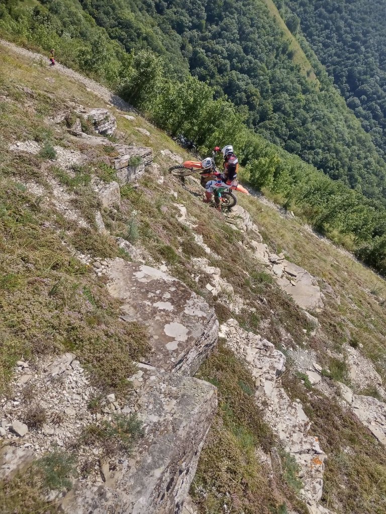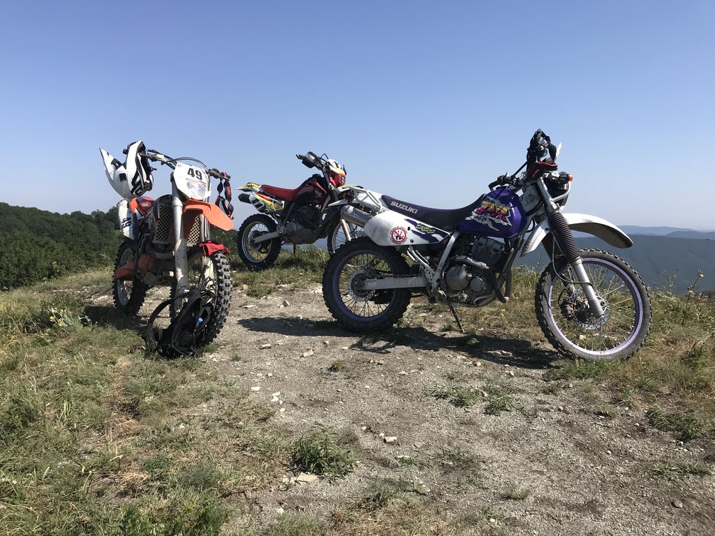 Выбрались с женой в горы. На счетчике уже 297 моточасов. Мотоцикл ездит и радует. Из неприятностей, сломался в маятнике регулировочный болт. Пока сделали временное решение, но нервирует. Пришёл третий по счету вентилятор (предыдущие два сломал), но поставить не успел. Да и особо смысла пока не вижу, был на гонках в тучково в +30 и в вельяминово тоже в +31, мот не кипел. В горах тоже себя нормально чувствует, главное ехать. Сравнил лоб в лоб с джебелем. После сравнения понял, что ходовая на Джебель просто хлам. По камням пдс работает весьма не плохо, даже не хочется выкинуть. Там где по камням ктм едет как по асфальту, Джебель приходится ловить. Колодки с алиекспресса справляются на мотоцикле без проблем. Помимо туристических маршрутов немного Харда тоже покатал, по маршрутам бронзы 100% Эндуро. Вроде ничего сложного не видел. Мот на низах тянет великолепно. Зацеп чувствуется очень хорошо.