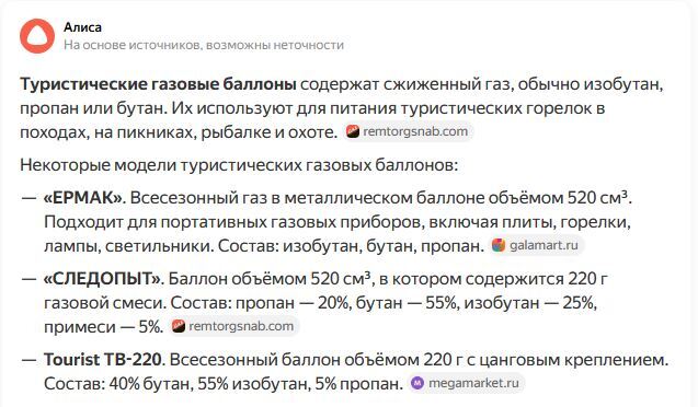 Да только в туристическом баллончике не сжиженный Приехали... А какой- природный что ли метан??? Полезно: 0