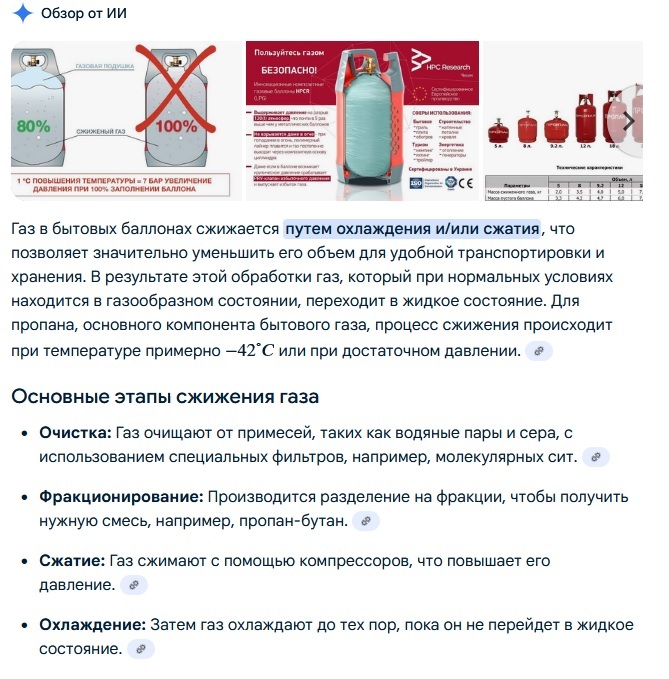 Видимо, за счет состава достигается жидкая фаза при более высокой температуре и при более низком давлении. Рабочее давление в бытовом газовом баллоне 16 кгс/см2 (атм) при таком давлении газ (пропан/бутан) там находится в жидком виде. Природный газ (метан) тоже сжижают, но при температуре -160 гр. и храниться так он может только в термосе с клапаном. Это уже криогеника. У нас автобусы городские ездят и на сжиженном СПГ и сжатом КПГ МЕТАНЕ. -------------------- Полезно: 0