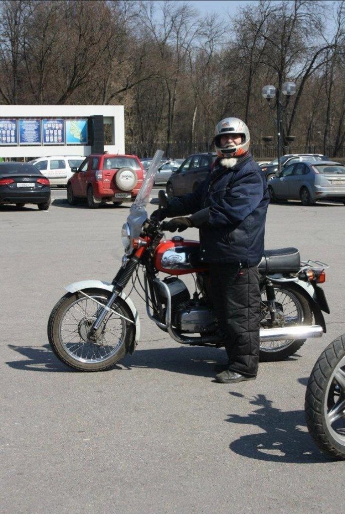 Вчера не стало легендарной личности. Самый старый байкер города Мытищи (если не всей России). Бородатый старичок на красной Яве. Ява всегда ухожена, всадник в ретро-шлеме, из-под которого торчит седая борода. Ездил даже в ноябре, запаковавшись в фуфайку и ватные штаны. И только сегодня я узнал его имя. Ивашкин Валерий Дмитриевич. Ему было 83 года. А его Яве было 40. Да и жил, как оказалось, недалеко от меня. Погиб в седле на Волковском шоссе около ТЭЦ. Как сказала одна из сочувствующих, погиб "в бою на коне", а не "в памперсах в постели". Царствие небесное, и ровных там дорог тебе, Дед.