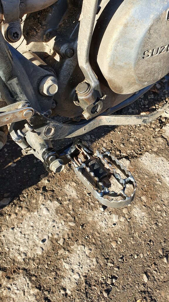 Первое в списке - расположение водительских подножек и их размер. На нормальных эндуро подножки расположены под осью маятника, в то время как на двухсотке они зачем-то вынесены вперед. Может это и хорошо при езде по деревне, но когда едешь в стойке, то вилка перегружена и переднее колесо неохотно переезжает препятствия, что особо заметно на брёвнах. Второе - это сами подножки. Опять же для езды по японской деревне в гэта (деревянные сандалии) они, наверное, подходят. Но во время долгой езды в стойке по сложному рельефу они превращаются в пыточный инструмент, иногда начинает даже сводить стопу. Плюс из-за маленькой площади контакта с подошвой мотобот они ее просто продавили и её пришлось менять. Сварщик из меня, к слову, как из Джебела спортбайк, опыта ноль, сварочник - колхозный TIG, который состоит из инвертора Ресанта с присоединенной к нему аргоновой горелкой. Но тем интереснее, безумству храбрых поём мы песню! Сначала взялся за кронштейны подножек. Кстати, они оказались разной длины, хотя пока я их не положил рядом, никогда бы не подумал. Выходит, что рама не симметричная Получилось как-то так: ![]() ![]() С подножками мудрить не стал, решил просто наварить по периметру вторым рядом стальную полосу с зубами, расстояние между полосой и подножкой взял 10 мм, на бумаге выглядело нормально. Полоса стальная, толщиной 2 мм, шириной 15мм, перемычки из того же материала. Сначала вырезал полосу шириной 30 мм, просверлил ряд отверстий диаметром 5 мм и межосевым расстоянием 9 мм, потом разрезал пополам, вышли как раз две заготовки. ![]() ![]() Вырезал перемычки, приварил их к подножке, и затем, начиная с центра, прихватил полосу и потом проварил, насколько удалось подлезть. Полуавтоматом, наверное, было бы проще залезать внутрь, но имеем что имеем. ![]() ![]() В итоге выглядит на своем законном месте так: ![]() Уже успел проверить, получилось ровно то, что хотел. Нога стоит уверенно, не ощущается, что стоишь на какой-то жёрдочке, падения, по крайней мере на мягком грунте, выдерживают без каких-либо проблем. Единственное, что я забыл напрочь про кикстартер, когда варил это всё, но оказалось, что ещё на пару миллиметров в сторону и подножка бы ему мешала, а так я вслепую угадал так, что он отлично проходит рядом с подножкой, ничего не задевая. Как-то так -------------------- Купил мотоцикл? Не ной и не ахай!