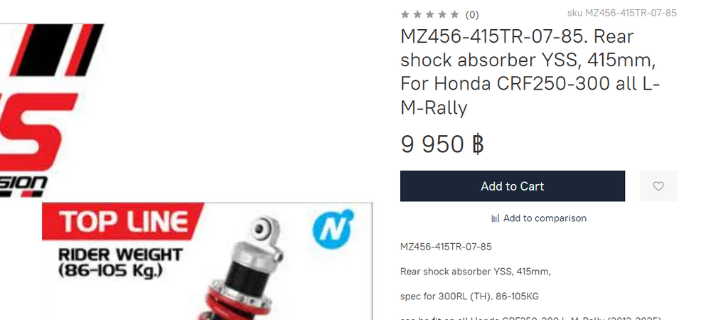 Или просто купить WRR. 100%)) Вкладывать сотни в подвеску- только если прям хочется именно црф Почему сразу сотни?)) Если человек привел сумму в 200 т.р., то это не значит, что они действительно выходят в 200 т.р.! Пружина под вес+другой амортизатор задний, ну никак даже на 100 т.р. не выходят (если только аморт не поставить Öhlins). Вопрос в другом, если можно найти условно новый (MD47) СРФЛ за 500, с пробегом около 1000км, и "допилить" его подвески, то что можно взять за 600, не Китай, свежих годов, инжектор, без пробега (маленький пробег) с нормальными подвесками? Только WRR, получается. Но я прошел этот путь уже, мне WRR более старших годов, но с маленьким пробегом (но больше, чем на СФРЛ, тут вообще 1000км), вышла в итоге ощутимо дороже, чем СРФЛ, при этом, на СРФЛ я поменял только заднюю пружину под вес и всё, вопросов к подвескам у меня нет! При этом, считаю, что важно учитывать такой момент, что на СРФЛ куча тюнинга по доступным ценам! Купите увеличенный бак на WRR)) Цены на них 60-100т.р. Что-то об этом все молчат. К слову сказать, 3 дня назад катался на Honda XR400R, из Америки притянули его, онли кик, состояние прям очень живое, 2004 год, обслужили его, масла поменяли, установили звезды на него 14/48, как у меня на СРФЛ. Так вот, что я хочу сказать, я не ощутил пропасти между ними, чуть-чуть более жесткие подвески на XR400R (как у меня на Джебеле были), но не такие собранные, как на WRR. И я не могу сказать, что я прям реально сильно ощутил разницу в тяге, между XR400R и СРФЛ. Само собой, разница есть, но она не столь большая, а с учетом разницы в весе, так я прям задумался. Само собой, что сравнивать их некорректно, но это к слову о подвесках. Ведь к Джебелу тоже были вопросы у многих, что диванные подвески и т.п. но там особо и выбора не было, чуть поджать пружину, да вязкость подобрать под себя. А с СРФЛ уже гулять можно на любой бюджет. А вот и цены на некоторые комплектующие, с учетом курса на сегодня: Картриджи YSS стоят 43 000руб (без учета доставки), но это картриджи!!! Пружина стоит 9500руб (без учета доставки) ![]() Задний амортизатор, без учета доставки, стоит 24 000руб. ![]() А вот если брать задний амортизатор Öhlins, то да, он уже выходит 60 000руб (без учета доставки). ![]() -------------------- Suzuki Djebel 250 XC (был) + Kawasaki Super Sherpa (был)