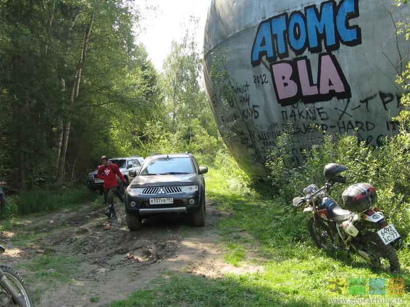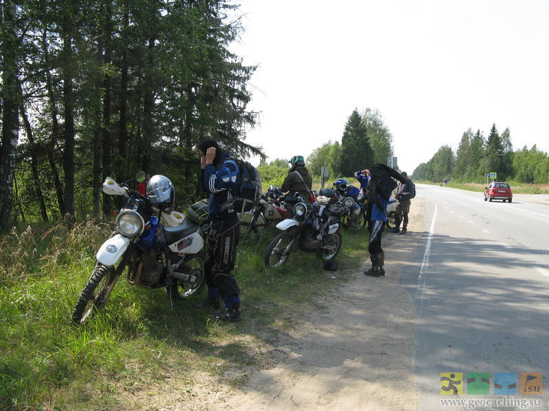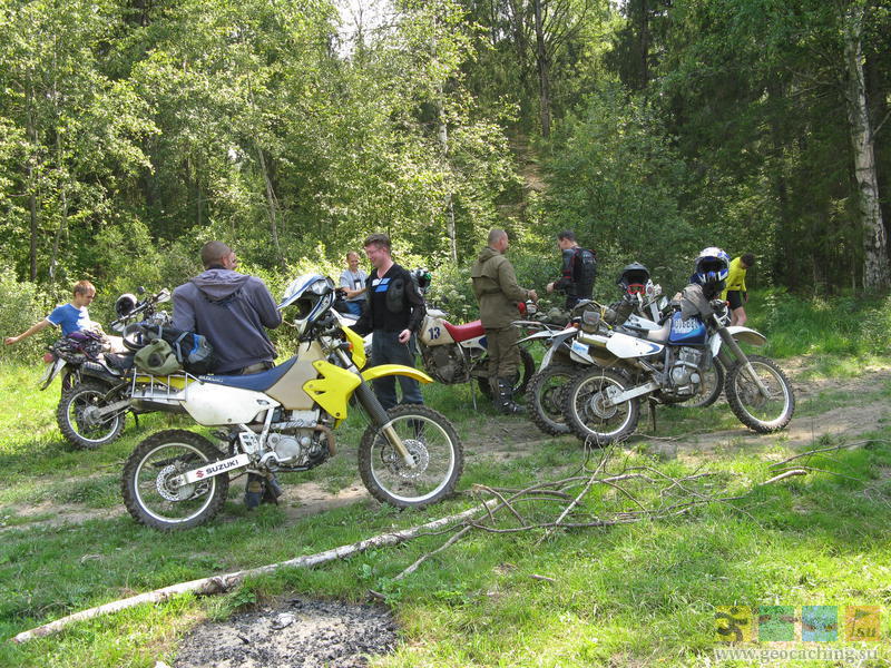 После шара поехал кэшить на соседние тайники в Кимры и Дубну. Нашёл тайник в Кимрах и один из тайников в Дубне (Ратмино на Дубне). В гараж вергулся в час ночи, спать лёг в час-40. Сейчас пишу отчёты на геокэшинге, чуть позже выложу фотки. П.С. Плутая по Кимрам в поисках самолёта (один из шагов тамошнего тайника), видел нескольких Джебелистов, явно наших. Свернул за ними, проехал с ними метров 100, и увидел тот самый самолёт. И нырнул к нему во двор. Перепост отчётов с геокэшинга. Тайник "НаШАРЬте!" Цитата Как я нашёл Шарик-Фигарик. Объект сей известен мне давно. Он же культовый. Место поломничества многих геокэшеров, туристов, джиперов, велосипедистов, любителей техногена и прочих и прочих... Дорога к Шару знаменита не менее, чем сам Шар. Став владельцем мотоцикла-эндуро, я стал подумывать о взятии тайника на мотоцикле, но прошлогодняя поездка на Гремячий под дождём по аццким глинистым колеям сильно охлаждала мой пыл и вынуждала ждать засухи. Не, я конечно понимаю, что ТРУ-эндурист, также, как и ТРУ-джипер любит сильные говны, глубокие колеи и засадные лужи, любит застревать, вытаскивать, короче - любит корячиться. А вот я не ТРУ, я лайт люблю, ибо "в герои непригоден"... И вот, неделя затяжной засухи, отсутствие дождей и обнадёживающие фотки сухой дороги от Упорного - короче, поездка наметилась на субботу 4-го августа. Кинул клич на Джебель-клубе, отозвались шестеро. Круто! Решили встречаться в Соболево, у поворота на Губин Угол, в час дня. Выехать я планировал в 9 утра, но у меня внезапно сдох аккумулятор. Они, аккумуляторы, всегода это делают ВНЕЗАПНО, и тем самым нехило подставляют. У меня был запасной, предыдущий, заряженный. Пока менял, пока то да сё, выехал в 10. Мкадуху объехал через Челобитьевское/Липкинское шоссе и выехал на Дмитровку. Кстати, на Челобитьевском шоссе соскоблен асфальт, хорошо, хоть что "мурашками", а не извилистыми полосами. На Дмитровке некоторое время пришлось потолкаться в пробке, после чего разогнался, но не нёсся колбасой а держал где-то 80 км/ч. И как ни странно, не опоздал! На въезде в Дубну встретил двоих наших: SerJO и незарегенного Дениса. Заправились перед пампасами и поехали на место встречи. На месте встречи - ТОЛПА эндуристов! Я посчитал мотики - всего их 9, включая двоих встреченных в Дубне. Трое из них (Kalin, Edge, DEN1S) в разное ремя уже мотокэшили со мной. Поехали через Демидовку - Губин Угол - Ларцево - срезку. В сторону Демидовки проложен новёхонький асфальт, но чуть не доходя до деревни он кончается, и дальше идёт добротный грейдер. Этот же грейдер идёт до Ларцево. По грейдеру нормально едется 45-50, иногда 60 км/ч, но двое (Edge, DEN1S) резко ушли вперёд. Можно даже в стойку не вставать, в чём я убедился на обратном пути. За Ларцево дорогу выровняли почти до самого Игнатово. Она теперь песчаная. По ней даже пузотёрки ездят. За поворотом на шар мы увидели экскаватор. Трудится, ровняет. Ехать решили по срезке: мы ж не ищем лёгких путей! Путь оказался не то, чтобы лёгким, но весьма и весьма подсохшим. Особого гемора не случилось. На обочине стояли два джипа. Я спаршиваю: Геокэшеры? Нет, говорят, просто туристы. Тарахтим дальше. "Вечная лужа" осталась, но в ней были "острова" и стали прослеживаться направления колей. Я её объехал по лесу, а остальные ломились по ней и вроде бы никто не застрял. И вот мы у шара!!! И не одни. Здесь и велосипедисты, и джиперы... А через