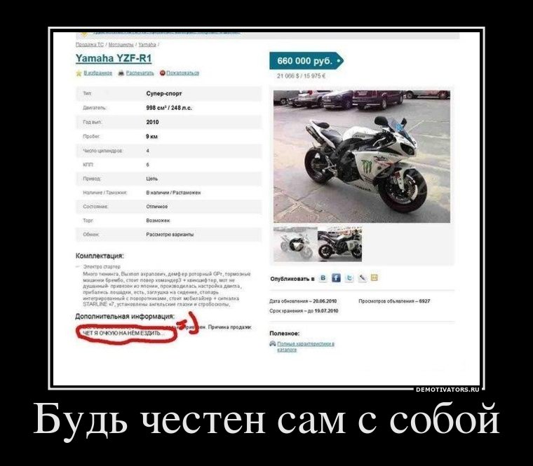 Взяли на днях др 600 85 г.в. Отцу. Если за спасибо, или сок, заберу. По мопеду (др600), по требованию. Можно создать тему с отчетами. Да, за спасибо ..... забрать можно на 23 км Новорязанского шоссе "Автотрэксервис" , да впрочем Юра ты у меня там бывал осенью прошлого года, когда я у тебя хотел твою Хонду XR-650L покупать. Мой телефон 8-926-526-27-24 ( если не сохранился) Александр. Так, что приезжай забирай. Полезно: 0