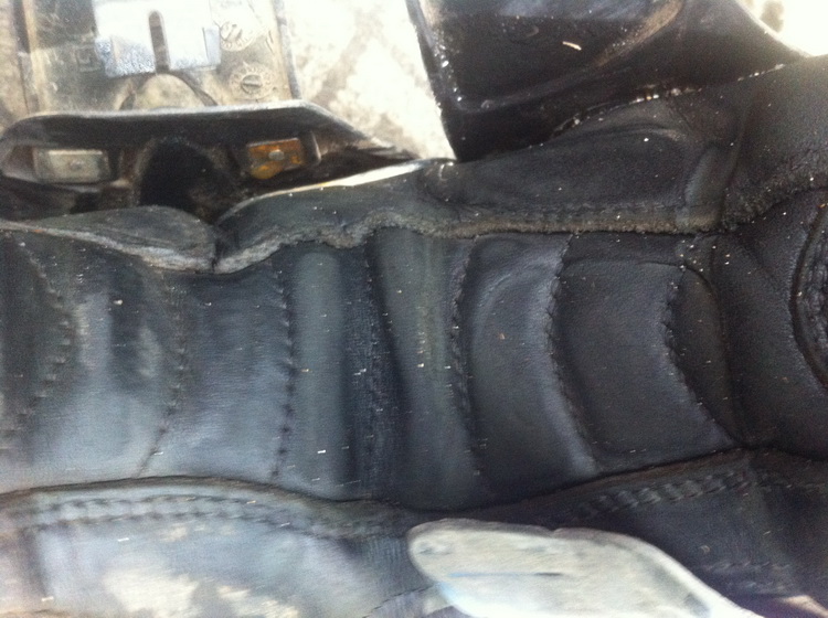 возможно у кого есть подобные боты, обратит на сей факт внимания и что то придумает что бы этого не случилось. Обмотать черной изолетной детали с острыми кромками. Отъездил в таких два сезона на квадре. Ничего не развалилось. По началу не промокали, можно было по щиколотку в воде стоять. Потом стали пропитываться. Но если натирать воском, опять не промокают. Они практически целиком - кожаные. Для мота наверное слишком мягкие(защита голени пластиковая, подошва жесткая, нос жесткий, защита пятки, но сам сапог просто из толстой кожи). Ходить в них очень удобно. Купил бы опять такие(но эти еще не развалились). Спасибо за отзыв. Посмотрю вблизи что там с защитой, вожет их и возьму. А то втарил Alpinestars Toucan Gore-Tex.... По началу было все ничего. Защита по виду приличная, только мягче кроссовых и с внешнего боку носка ее маловато. Пятка нормально зафиксирована, носок свободный, колодка широкая. Водонепроницаемость не тестил, т.к. предпоследний дождь был перед их покупкой, а последний уже сегодня, за пару дней после того, как через неделю после покупки обнаружилась порвавшаяся нитка на одном из швов верха ботинка. Полезно: 0