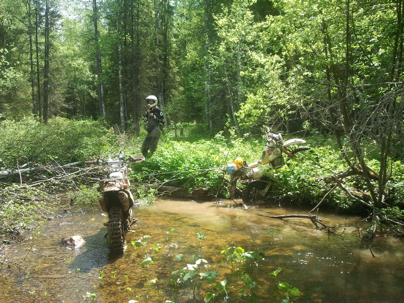 У райдера похоже не было воды и перекура для анализа ситуации и восстановления сил. Не, вода была и перекур недолгий был, но я уже к этому времени был мокрый как мышь от пота. После того, как мотоцикл был благополучно положен на бок, нужно было перетаскивать по одному колесу в сторону тверди. Причем сделать это за руль по моему не реально. Это я и пытался сделать, но силенок не хватило. Сначала попробовал тянуть за руль, но понял, что бесполезно. Потом хватался прямо за колеса, но было неудобно и я уже выдохся =) Полезно: 0