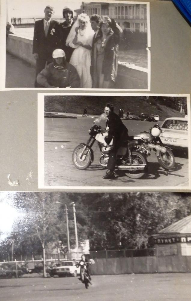 На верхнем фото- я с товарищем по мото-группировке))). Я выше ростом,в панамке, мой мот справа, возле него мой белый "колпак".Фото ниже- вся наша группа, 4 Явы, 2 Иж-ПС. Я второй слева. Нижняя тройка фото- мото-эскорт свадьбы одного из парней группы. Свидетель садится на ПС, и проезжает по набережной Хабаровска на колесе. -------------------- Мои видео по Джебелю-200 ( обслуживание и пр) здесь: ССЫЛКА.